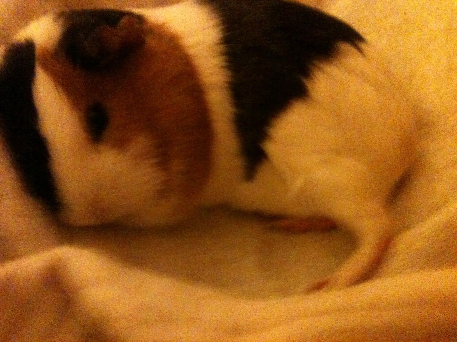 Agent Lettuce favours finding a fold in her towel or duvet to lean her little head against, then she curls round and onto her chunky little side, sticking out one or both back paws and sometimes front paws too.