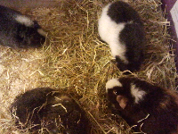 In the pictures on the right you can see Lily and Chico wrapped in towels and a fleece blanket sharing a piece of chicory. On the picture on the left you might be able to spot 2 piggies, you can see my Boyfriends' head, and the cage in the background...